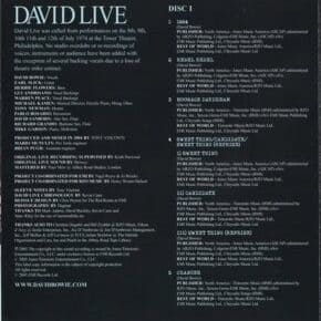 David Live is David Bowie’s first official live album, originally released by RCA Records in 1974. The album was recorded in July of that year, on the initial leg of Bowie's US Diamond Dogs Tour, at the Tower Theater in Upper Darby, PA, a suburb of Philadelphia. (The second leg, a more soul-oriented affair following recording sessions in Philadelphia for the bulk of Young Americans, would be renamed 'Philly Dogs'.)