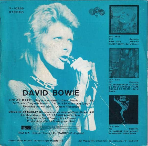 David Bowie Life On Mars – Drive In Saturday (1973 Spain) estimated value € 46,50